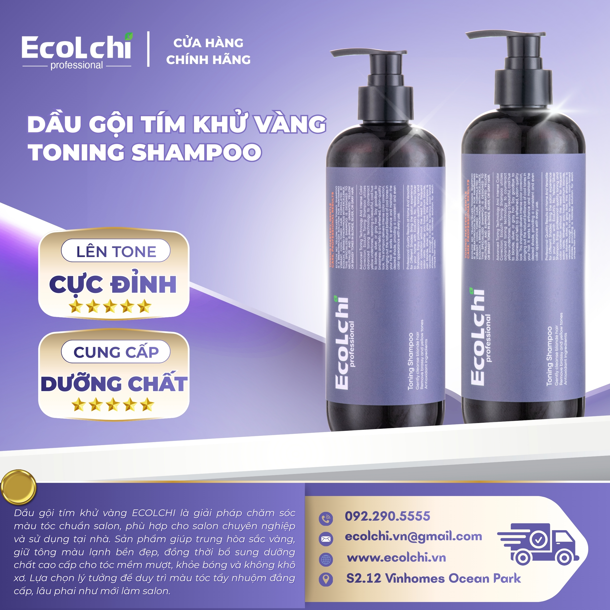 EcoLchi Việt Nam là đơn vị chuyên cung cấp các sản phẩm tóc chuyên nghiệp cho salon và người tiêu dùng hiện đại. Bên cạnh gội khử vàng EcoLchi, EcoLchi còn có đầy đủ các dòng dầu gội – xả, kem hấp phục hồi, tinh dầu dưỡng tóc, sản phẩm hóa chất và chăm sóc sau nhuộm.